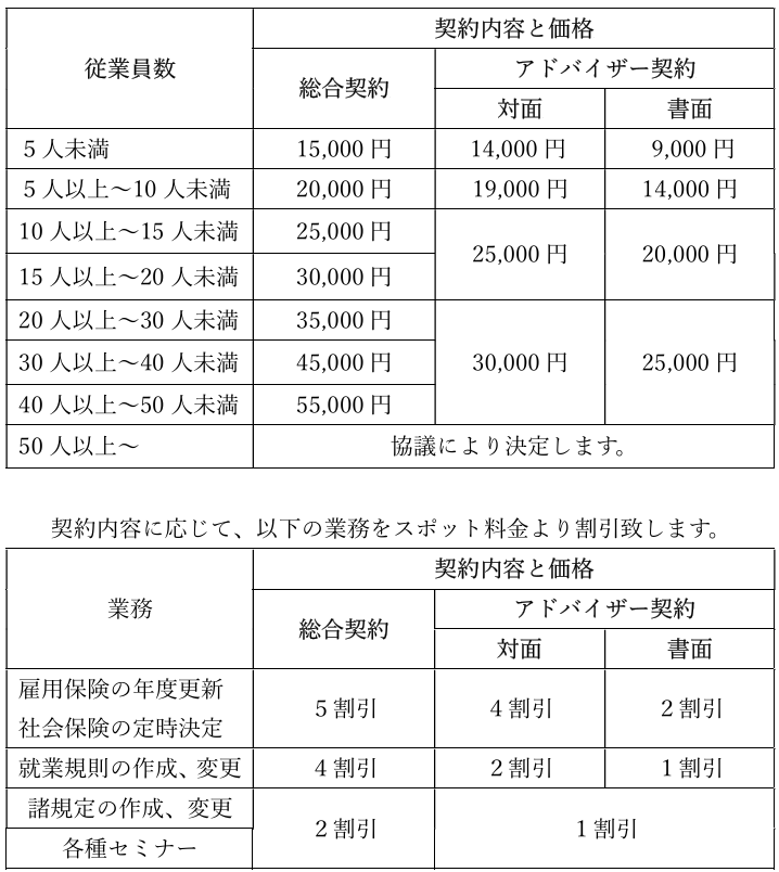 (2)アドバイザー契約 労務相談のみ行います。対面と書面の2つの形式があります。